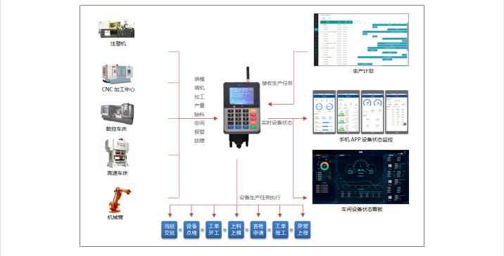 a) 鴻云智能終端-設備聯(lián)網(wǎng):工人全面管理作業(yè)支持,人機料協(xié)同控制