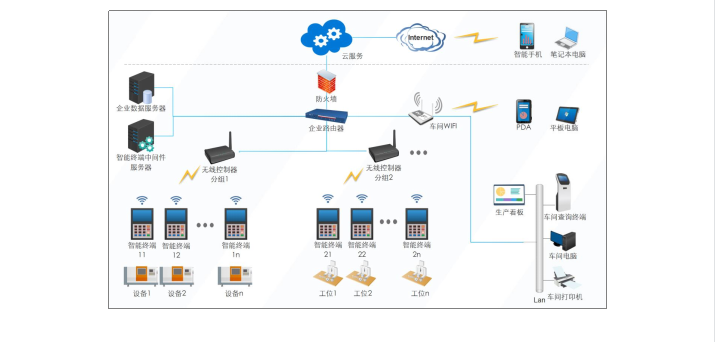 無需機臺布線,通過專用工業(yè)WIFI實現(xiàn)無線聯(lián)網(wǎng),穩(wěn)定可靠,相比4G網(wǎng)絡節(jié)省費用,比一般WIFI穩(wěn)定可靠。