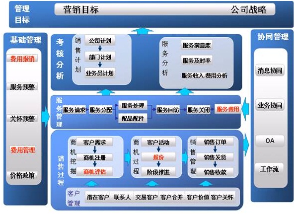 金蝶K/3 WISE精細(xì)化客戶關(guān)系管理解決方案在銷售、采購、倉庫、計(jì)劃、生產(chǎn)管理信息化的基礎(chǔ)上,提供了客戶與商機(jī)管理、服務(wù)管理等管理工具。這一綜合解決方案涵蓋了與客戶經(jīng)營(yíng)有關(guān)的主要核心業(yè)務(wù),包括: